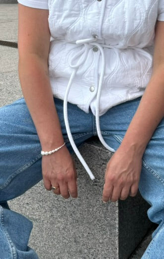Perlerne er sat på silkesnor for at få det smukkeste fald om håndleddet.