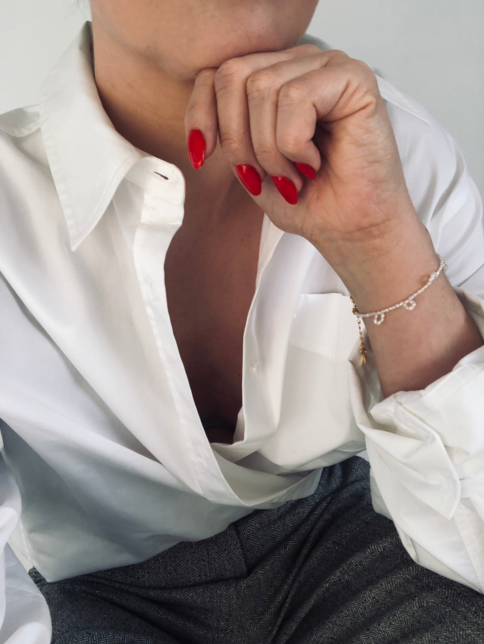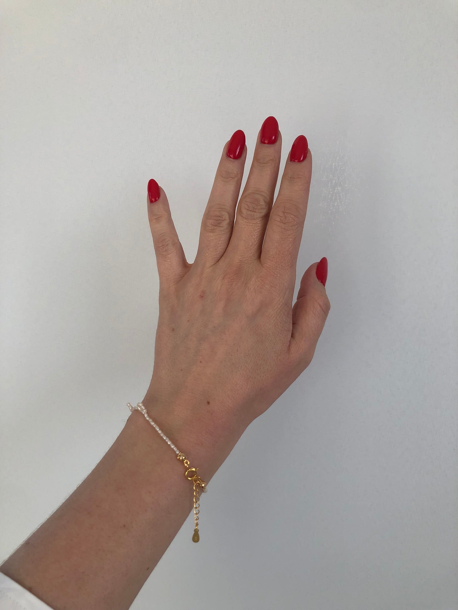 Inverted Knottie bracelet er et smukt og enkelt armbånd, som udelukkende består af mini ferskvandsperler. Der er lavet seks små loops, som gør armbåndet mere levende.
