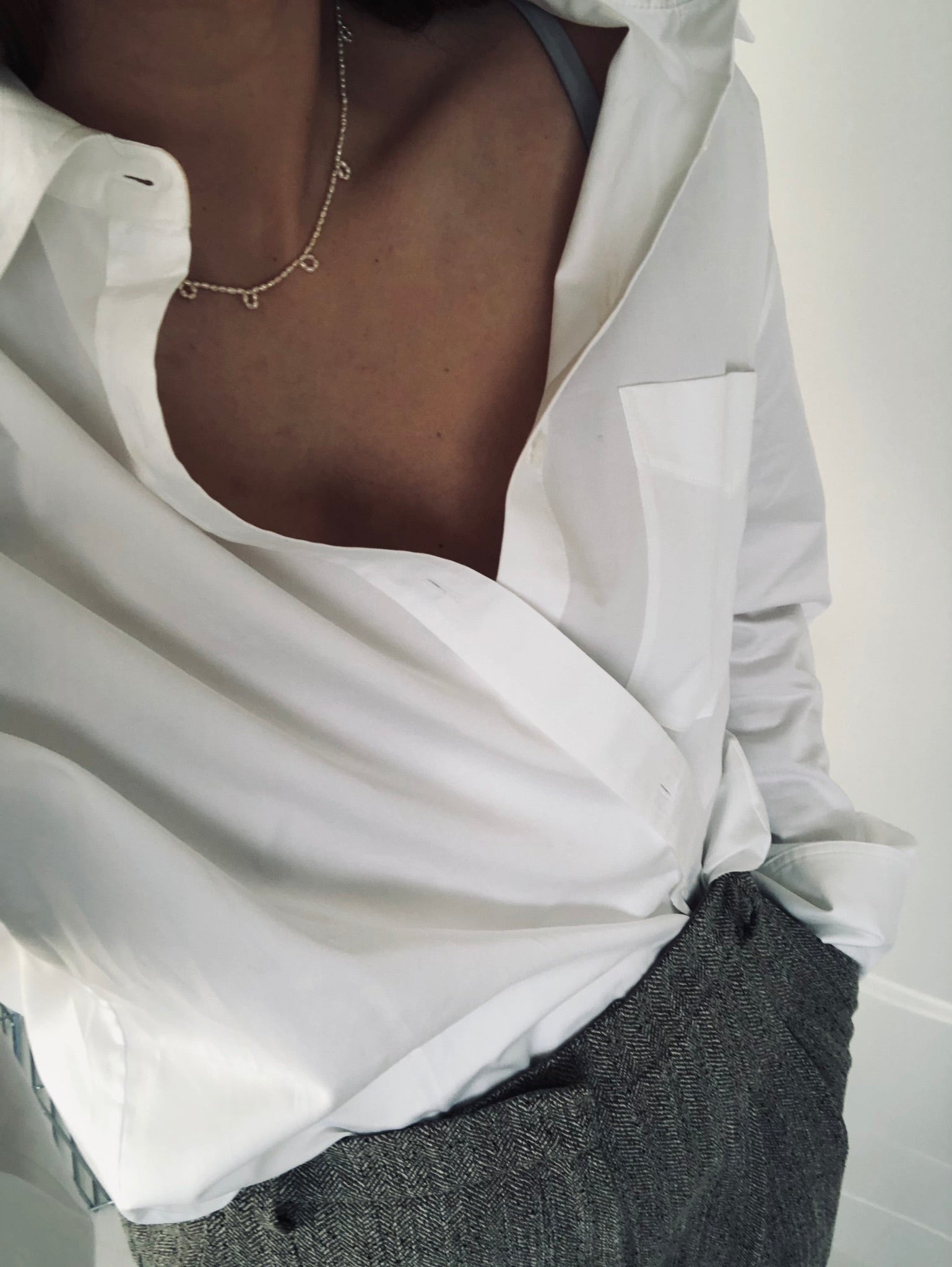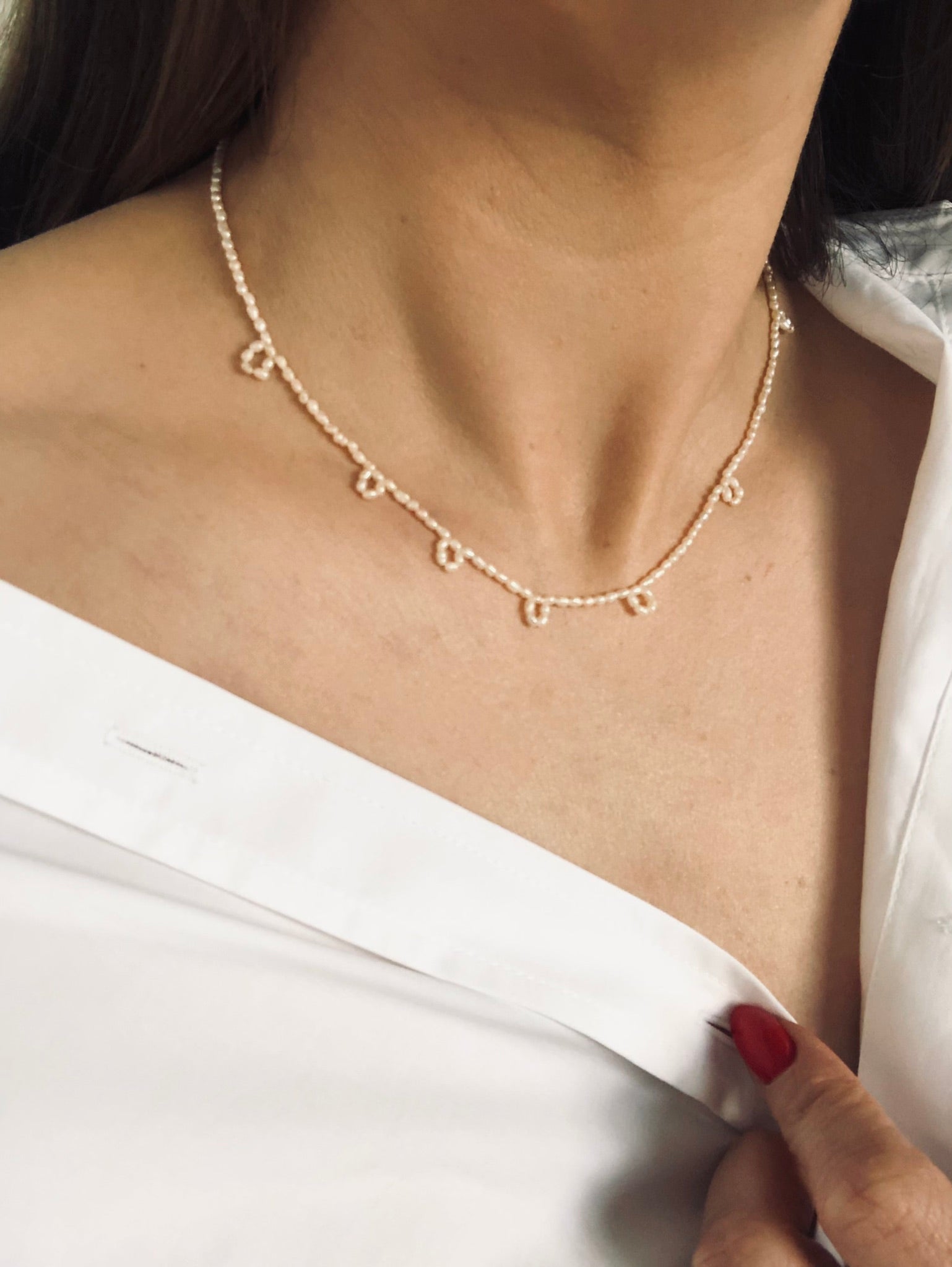 Jeg ville gerne lave en halskæde med miniperlerne, men den skulle selvfølgelig ikke være plain. Derfor lavede jeg disse små 'omvendte knuder'. Jeg synes, det giver så fint og levende element til halskæden. Der er syv 'knuder', og de sidder asymmetrisk.
