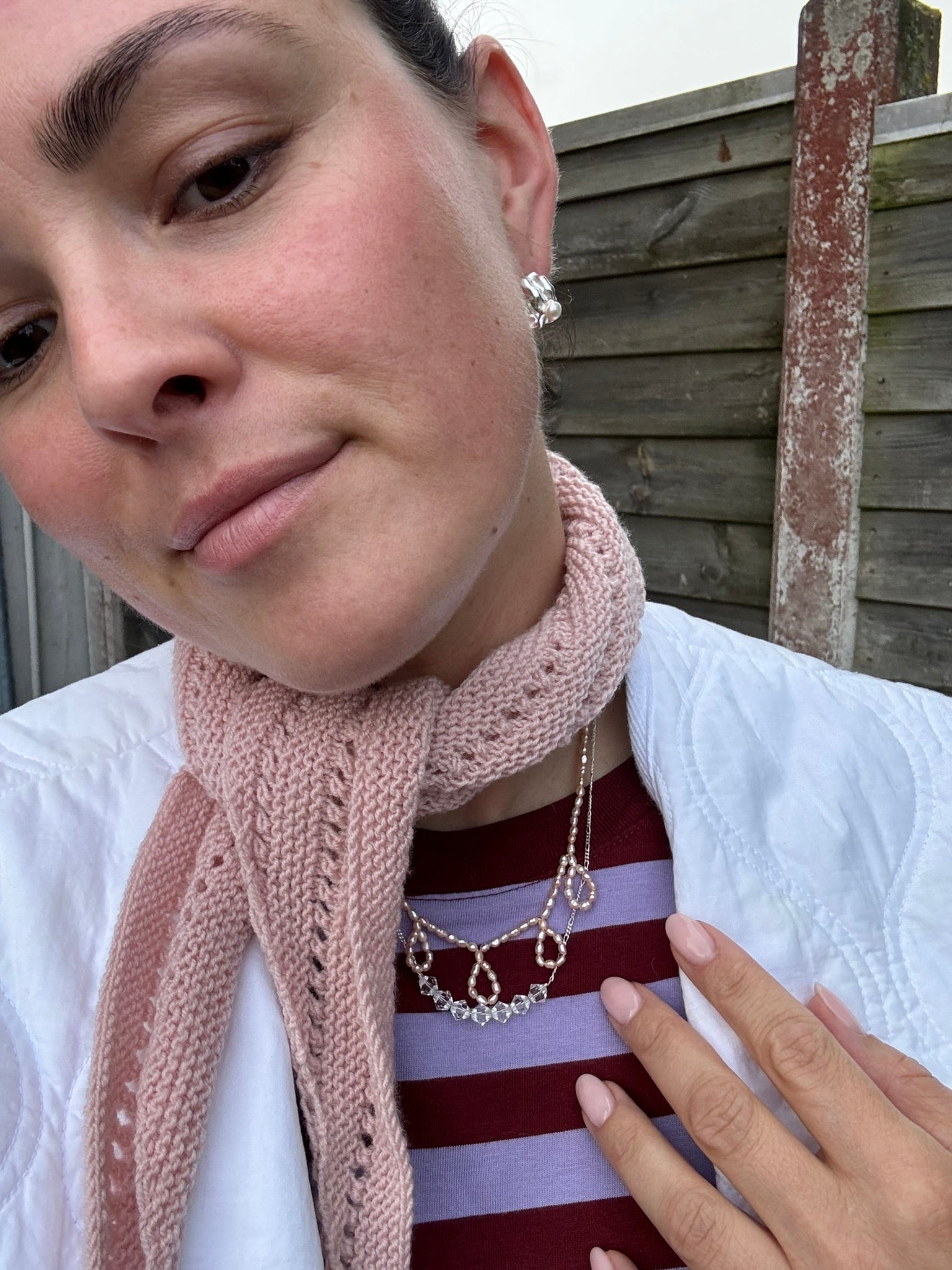 Ferskvandsperler har ikke godt af at få fugt. De kan miste deres smukke, skinnende overflade. Du bør derfor opbevare dine perler i den medfølgende smykkeæske, når smykket ikke er i brug. Det samme gælder for metallerne. Hvis metallerne får fugt, kan de oxidere og blive grimme. Jeg anbefaler derfor også, at du ikke har dine smykker opmagasineret på badeværelset, men evt. i stuen eller gangen.