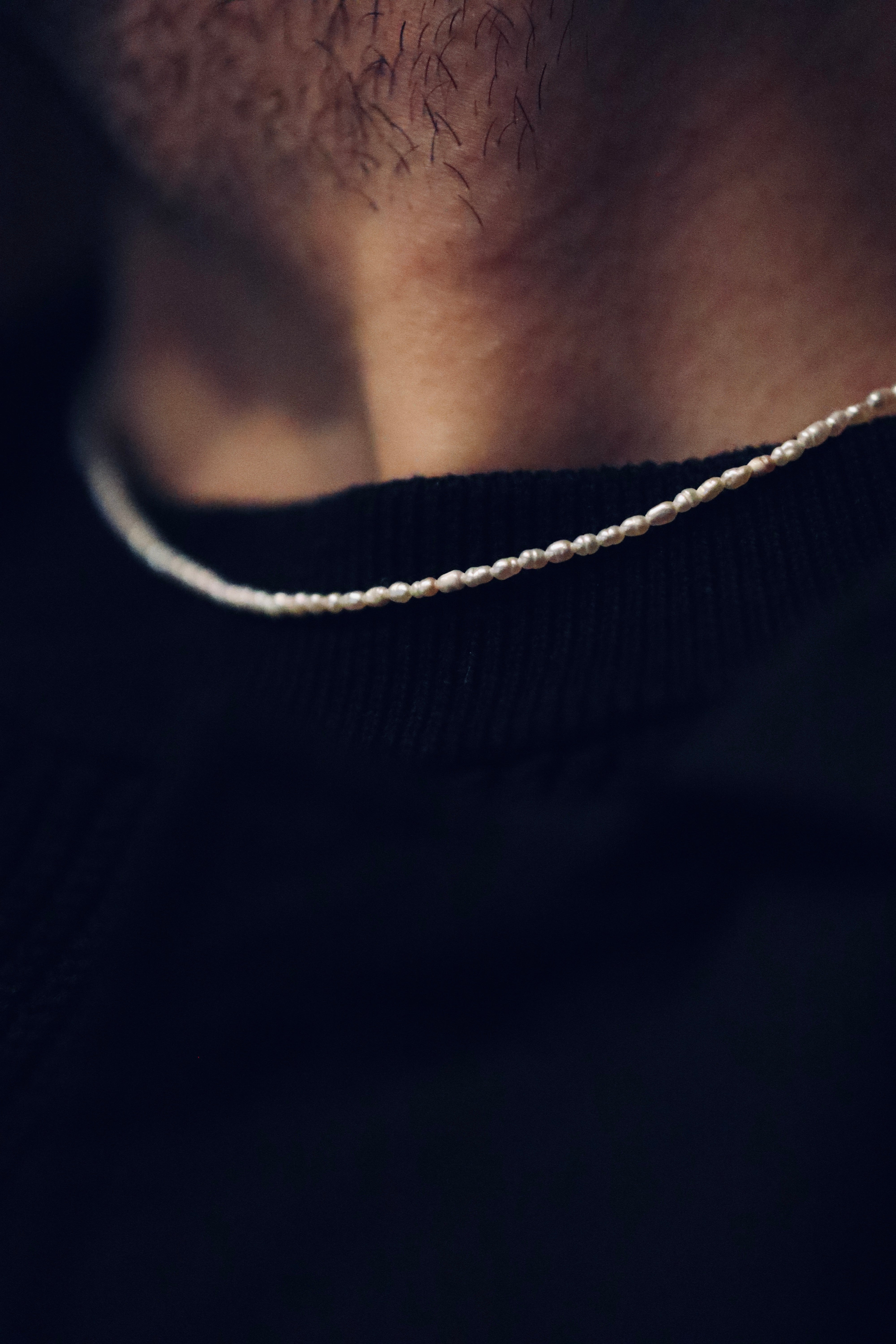 Den består udelukkende af små ferskvandsperler, som måler cirka 2 mm og er så smuk til en almindelig bluse eller en strik.